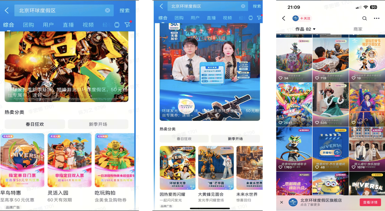 平臺(tái)+商家組隊(duì),共創(chuàng)協(xié)同增長(zhǎng) 抖音生活服務(wù)「城市奔赴計(jì)劃·春游季」和商家組隊(duì)放大招,探索平臺(tái)與商家的協(xié)同增長(zhǎng)新出路。北京環(huán)球影城直接開卷:平臺(tái)獨(dú)家推出雙人春日票、家庭套票,精準(zhǔn)拿捏遛娃黨、約會(huì)黨的需求;商家加碼專屬立減券,年卡和團(tuán)購品銷量起飛;7大主題直播間輪番上演“環(huán)球限定版”春日狂歡,邊逛邊搶福利,交易額一路狂飆!