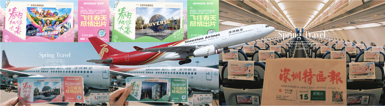 跨界+資源整合,玩轉(zhuǎn)共贏生態(tài) 抖音生活服務(wù)「城市奔赴計(jì)劃·春游季」充分整合平臺(tái)資源,搞了場(chǎng)“上天入地”的跨界聯(lián)動(dòng)。 北京環(huán)球影城+深圳航空+三里屯洲際酒店達(dá)成「春日主題航班」包機(jī)合作,10萬張品牌聯(lián)動(dòng)主題登機(jī)牌變身“春日邀請(qǐng)函”,一場(chǎng)飛行直接串聯(lián)三大品牌與10萬+用戶互動(dòng)。乘客掃碼跳轉(zhuǎn)抖音活動(dòng)會(huì)場(chǎng),就能解鎖環(huán)球影城同款歡樂、洲際酒店度假套餐,在高空直接種草目的地。