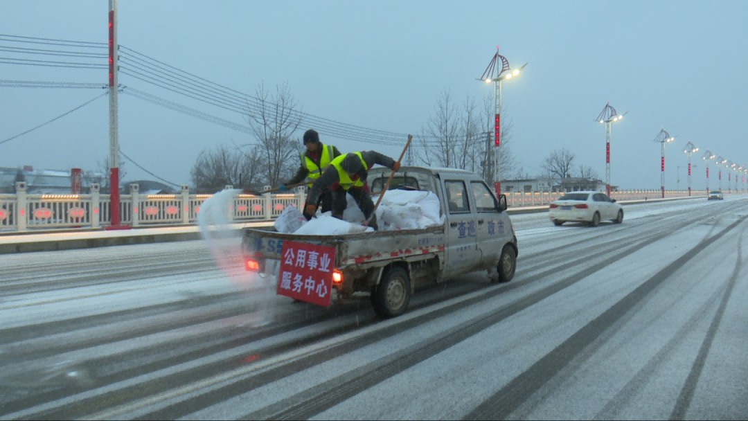 在城區(qū)主干道等區(qū)域,工作人員冒著嚴(yán)寒,有條不紊地進(jìn)行清雪和撒鹽。一抹抹忙碌的身影,在雪夜里格外溫暖,為群眾安全出行筑牢“防凍線”。