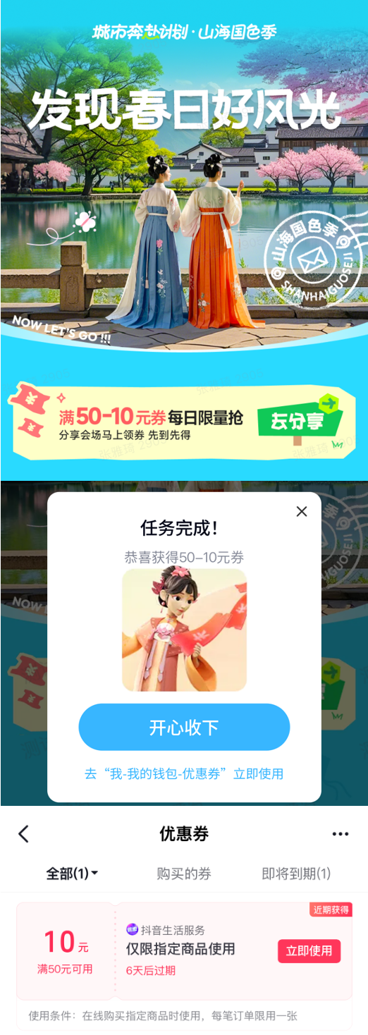 此次活動(dòng)更開創(chuàng)政企合作新范式,多地文旅部門深度參與內(nèi)容共創(chuàng),深度融合城市人文特質(zhì)與自然景觀,共同打造主題特色鮮明、獎(jiǎng)勵(lì)豐富精彩的沉浸式文旅活動(dòng)。活動(dòng)從上饒「共赴一場(chǎng)春日花事」主題盛典和武漢「漢馬美食生活節(jié)」開始,一站打卡限定好禮和獨(dú)家體驗(yàn),快來(lái)跟抖音一起漫步春日好風(fēng)光吧!