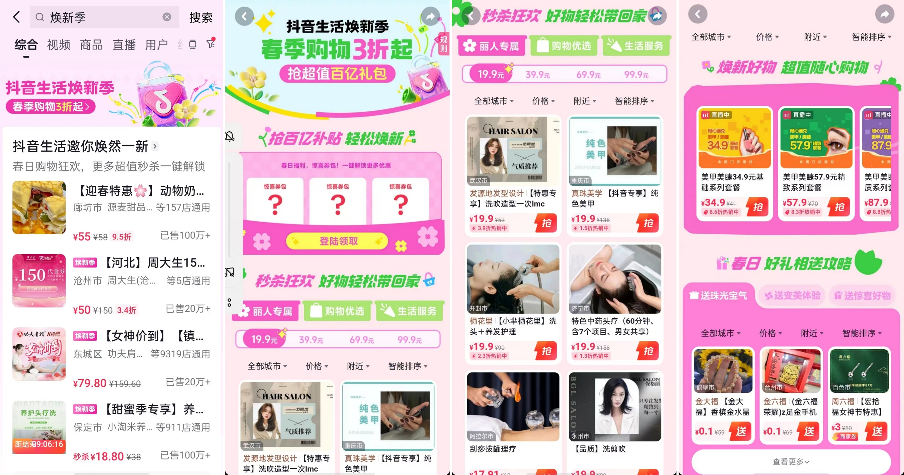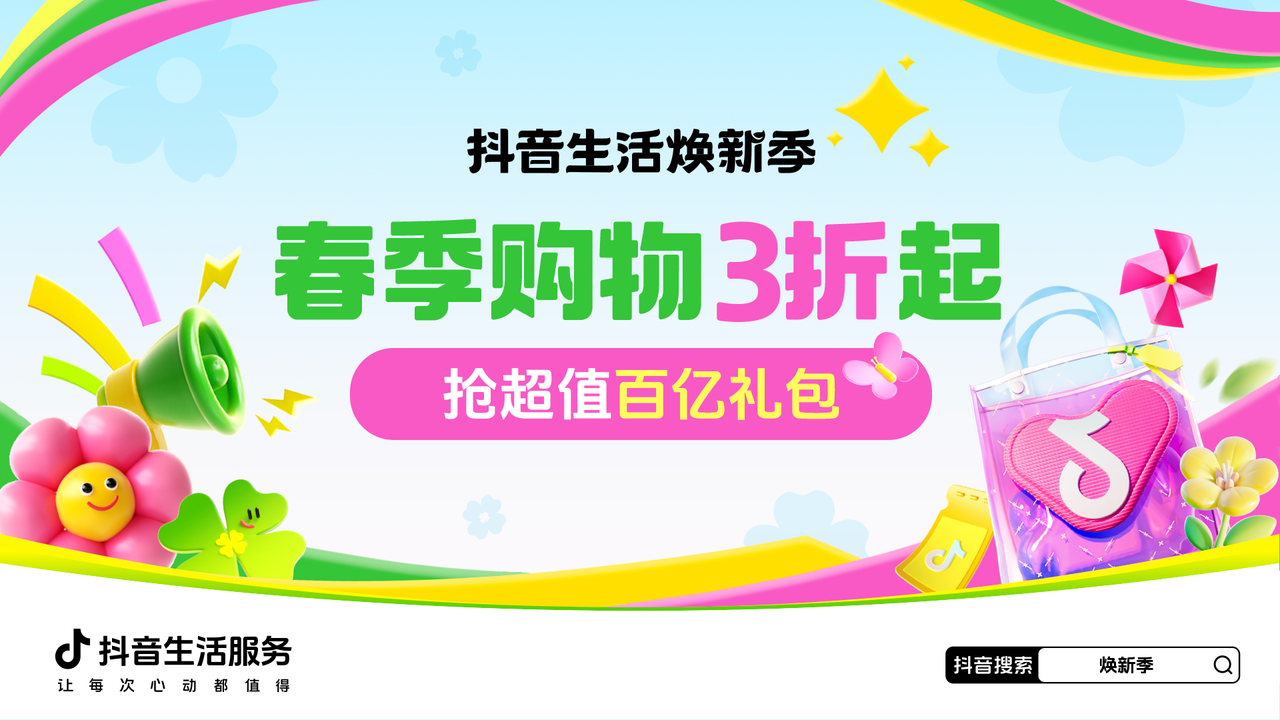 逛街先逛「抖音生活煥新季」!即日起上抖音搜索#煥新季 ,進(jìn)入活動(dòng)主會(huì)場(chǎng),線上選購(gòu)下單,線下核銷體驗(yàn),在春天,從新開(kāi)始,從心綻放。