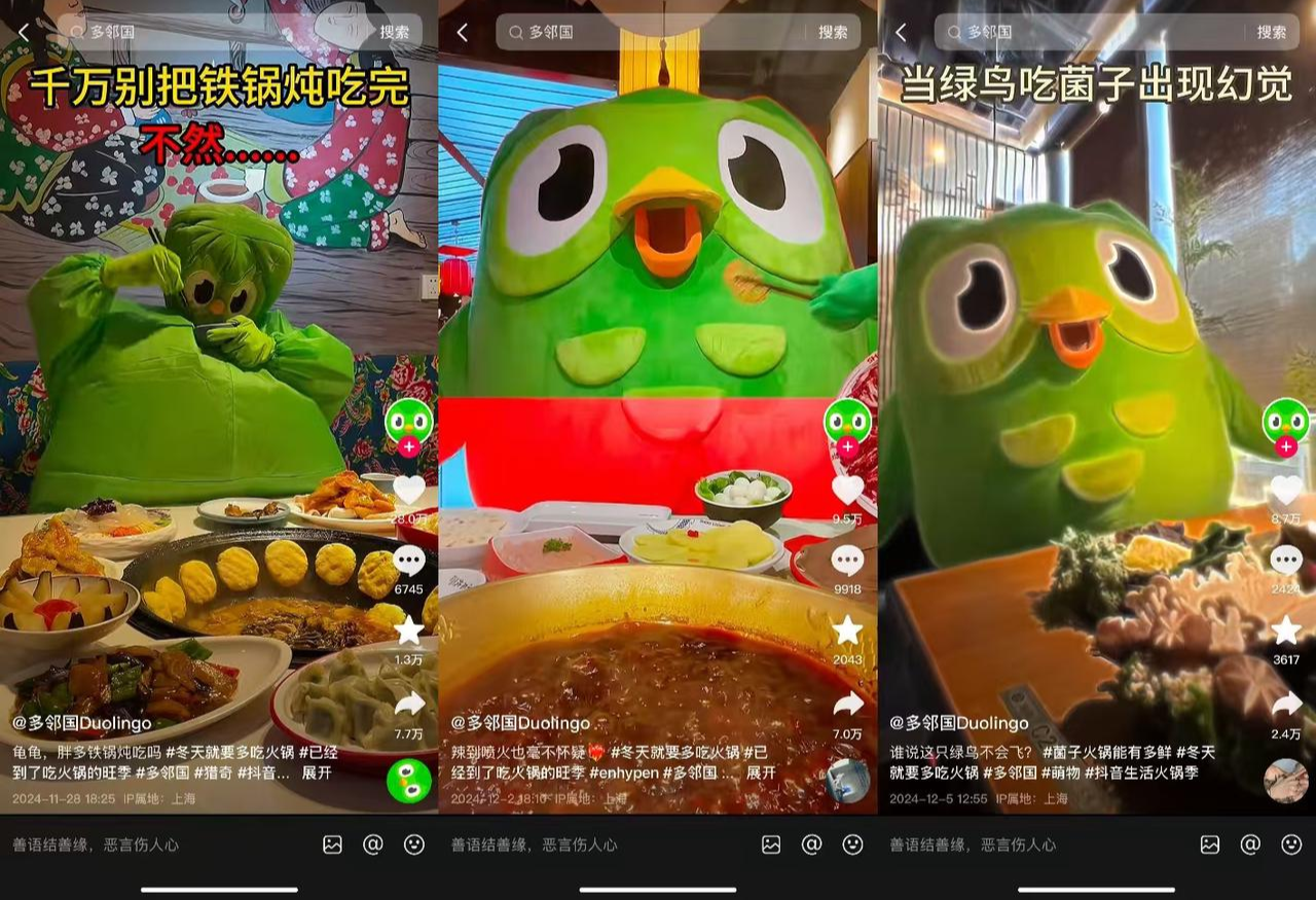 當(dāng)然,不止時(shí)尚文化,在同樣深受年輕人喜愛的亞文化圈層,火鍋季聯(lián)動(dòng)多鄰國(guó)IP形象“多兒”以火鍋為主題,用年輕人喜愛的整活方式,拍攝了多支創(chuàng)意視頻。例如,多兒吃菌子出現(xiàn)幻覺,多兒被火鍋辣到噴火等內(nèi)容。這些幽默的亞文化內(nèi)容提升了火鍋種草的效果,加深年輕人對(duì)這次火鍋季的記憶與認(rèn)知。