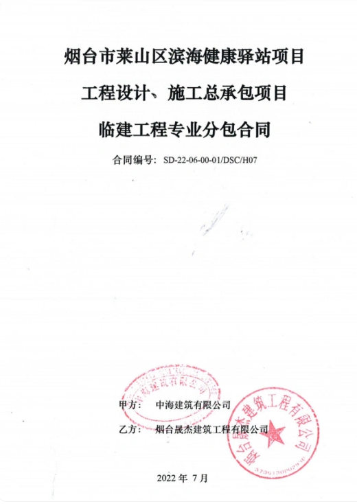 記者進一步調(diào)查發(fā)現(xiàn),中海建筑有限公司與煙臺晟杰建筑工程有限公司在2022年7月簽訂《煙臺市萊山區(qū)濱海健康驛站項目工程設計、施工總承包項目臨建工程專業(yè)分包合同》,中海建筑公司商務部姜博瀚向記者證實“項目于2022年6月啟動”,而晟杰建筑卻表示,他們早在2022年4月就已進場施工。項目尚未啟動,施工隊伍為何已提前兩個月進場?這一時間差讓“未招先建”的嫌疑愈發(fā)濃重。