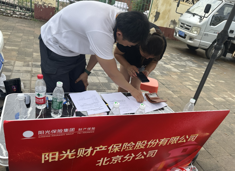 (陽光財險北京分公司在密云太師屯等地建立臨時理賠點)