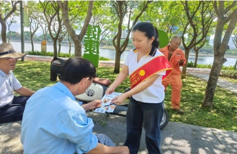 (海南陵水機(jī)構(gòu)工作人員向老年人普及反詐防騙知識(shí))