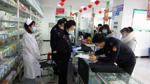 盤(pán)錦市市場(chǎng)監(jiān)管局執(zhí)法人員對(duì)藥店開(kāi)展檢查。