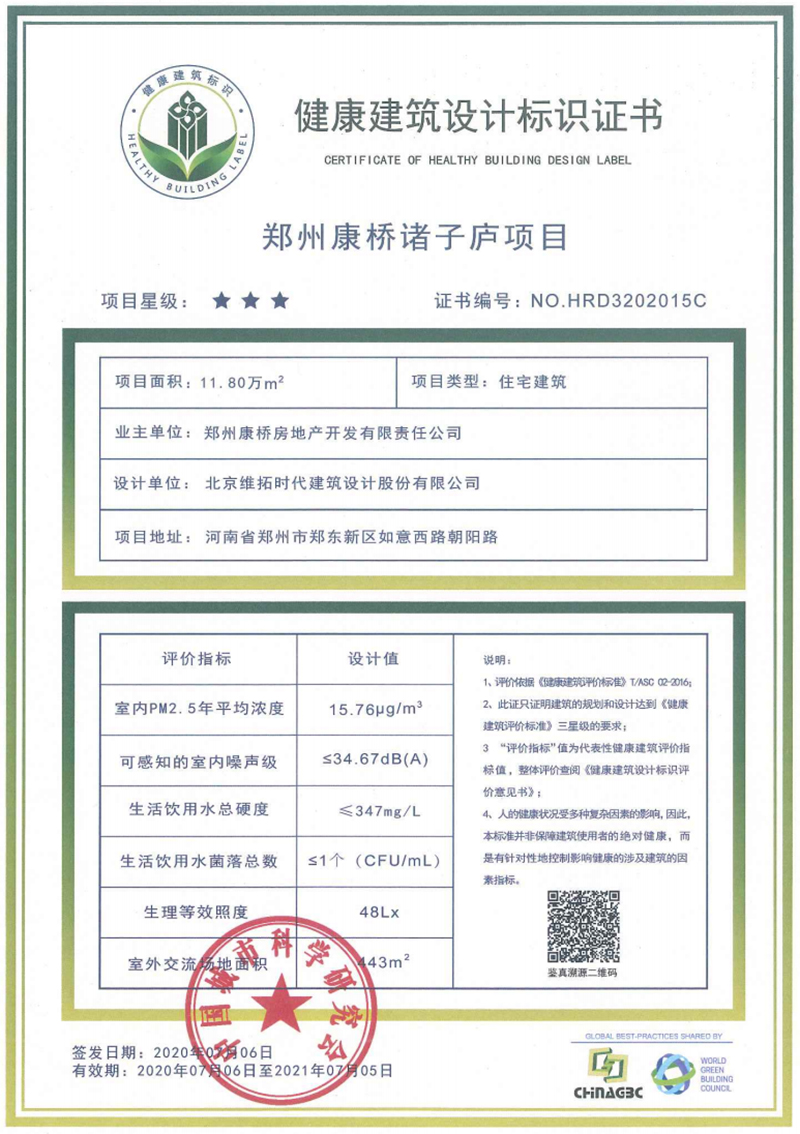 △康橋諸子廬項目示意圖 在建筑設計上,創(chuàng)新采用53%窗墻比及7.9米巨幕寬廳,最大限度保證采光面與取景面,營造健康光照環(huán)境;德國定制的WICONA幕窗系統(tǒng),采用雙中空Low-e玻璃,三玻兩腔斷橋鋁外窗,實現(xiàn)室內(nèi)極致噪聲控制。 除此之外,在室內(nèi)居住場景中,通過配備全熱交換戶式新風除霾系統(tǒng)和全屋凈、軟水系統(tǒng),對室內(nèi)空氣和生活用水進行層層過濾;各類裝修材料、家具及室內(nèi)陳設的甲醛、TVOC等污染物的含量均低于限值并處于較低水平;此外智能家居控制系統(tǒng),整合智能入戶、可視對講功能、美學智能開關面板多種功能,輕松實現(xiàn)一鍵布防撤防,暢享智慧生活。 除了在規(guī)劃、建筑和室內(nèi)設計層面,照顧居者的居住感受,在精神層面,同樣不遺余力??禈蛑T子廬耗費巨資傾力打造一座近3000㎡的“第三空間”,合理布局宴會廳、私人影院、健身房、SPA包房、閱覽室、紅酒品鑒室等,與室外健身場地、交流互動空間形成內(nèi)外聯(lián)動,傾力打造健康活力社區(qū),讓居者暢享生活的愉悅,實現(xiàn)從身體到精神的全面健康奢享。 經(jīng)過中國城市科學研究會組織的嚴格審定,康橋諸子廬憑借領先的產(chǎn)品理念和先進的綠色建筑技術,最新榮獲“三星級健康建筑認證住宅項目”,為康橋健康人居的進一步發(fā)展樹立了典型標桿。