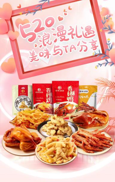 “520”諧音“我愛(ài)你”,一個(gè)被數(shù)字賦予浪漫與愛(ài)的日子,見(jiàn)證了無(wú)數(shù)愛(ài)意表達(dá)的浪漫時(shí)刻。520來(lái)臨之際,你是否準(zhǔn)備好向心愛(ài)的TA表達(dá)愛(ài)意?都說(shuō)俘獲一個(gè)人的心,先要俘獲TA的胃,想要在這個(gè)重要的日子里“心與胃兼得”,千萬(wàn)別錯(cuò)過(guò)國(guó)民鹵味品牌紫燕百味雞的“520禮遇季”! 美食傳情意,“520禮遇季”就是要給你滿滿儀式感。紫燕百味雞真空系列鹽水口條、鹽水鴨肫、五香豬頭肉、雙椒鴨脖2袋、雙椒鴨翅2袋、鴨鎖骨2袋,99元任選5件,抱走一大箱!真空系列是紫燕百味雞在食品保鮮工藝的支持下,采用高端真空包裝設(shè)備,使得鹵味在常溫下保質(zhì)可達(dá)九個(gè)月,美食賞味期更長(zhǎng)久,攜帶更方便。帶上心愛(ài)的TA去郊游野餐,或是去電影院觀影,一包紫燕鹵味總能拉近你們的距離。