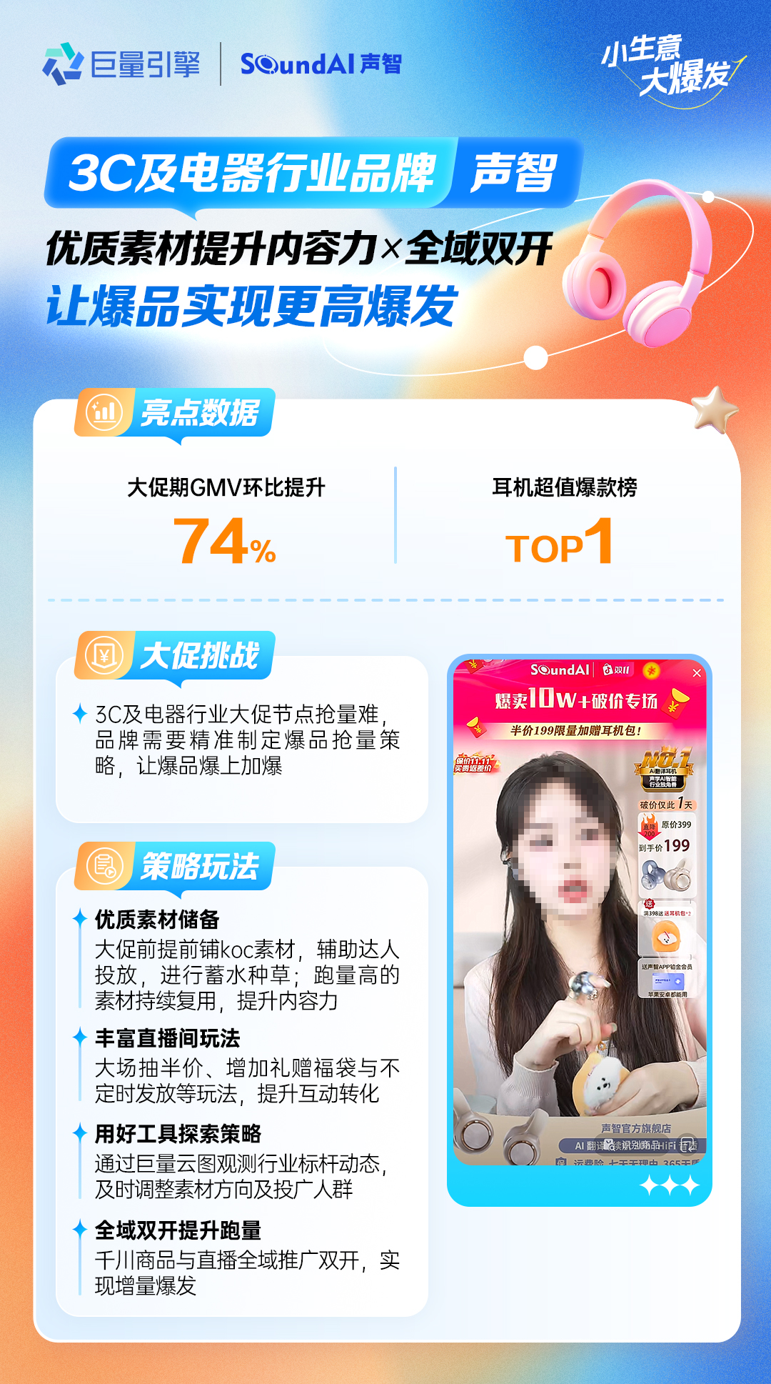 3C電器行業(yè)商家聲智 提升素材內(nèi)容力x全域雙開,讓爆品實(shí)現(xiàn)更高爆發(fā)