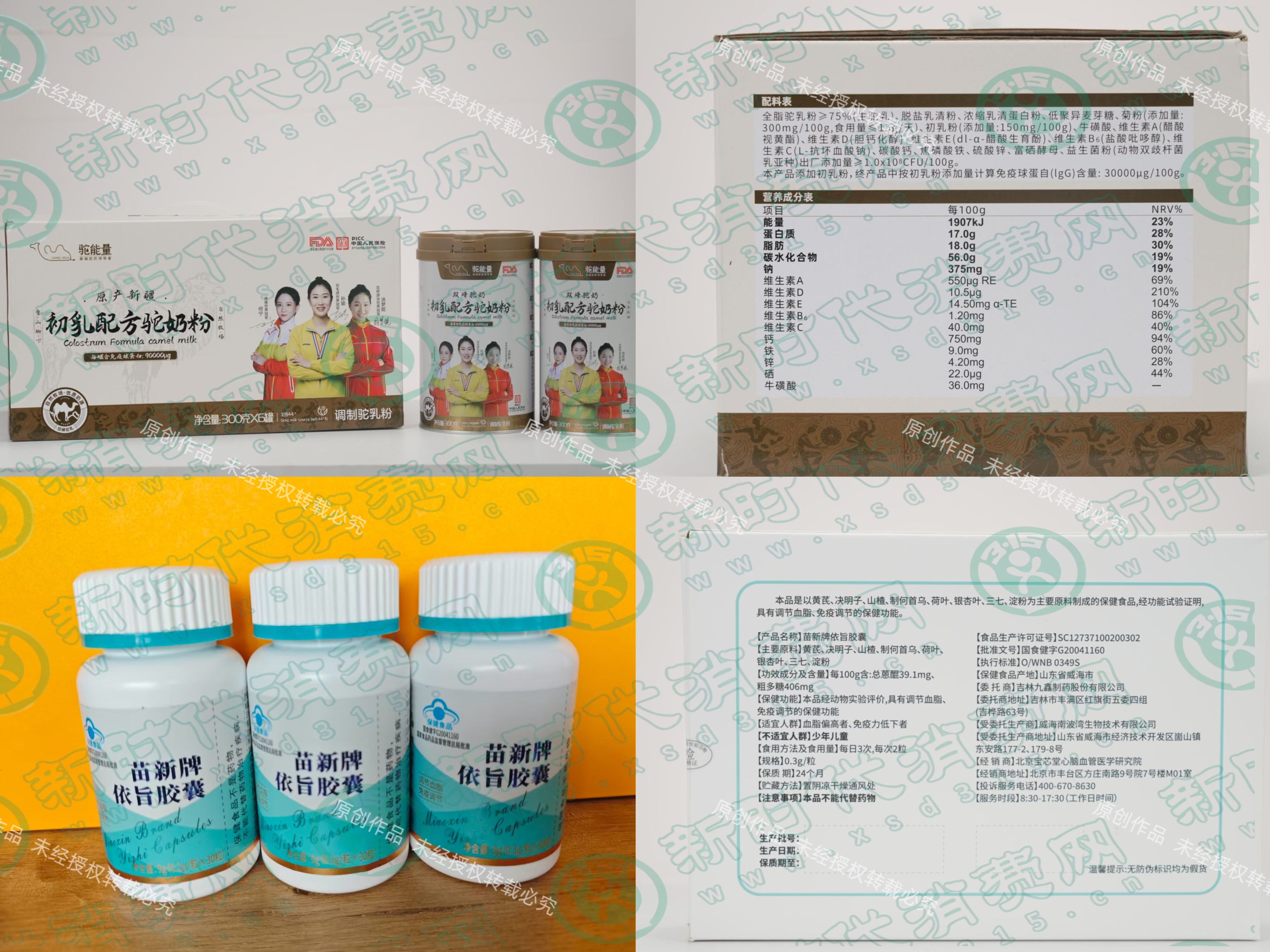 與此同時,被搭售或捆綁出現(xiàn)的“苗新牌依旨膠囊”為普通保健品,“初乳配方駝奶粉”為普通食品。這些產(chǎn)品雖然包裝精美,名字聽起來高大上,但始終掩蓋不了食品的本質(zhì),主講人通過制造健康焦慮、專業(yè)“醫(yī)托”,營造產(chǎn)品稀缺、效果顯著,營銷卻又以“治療”“逆轉(zhuǎn)”“延壽”等高強度暗示推進交易,風險便會被迅速放大。