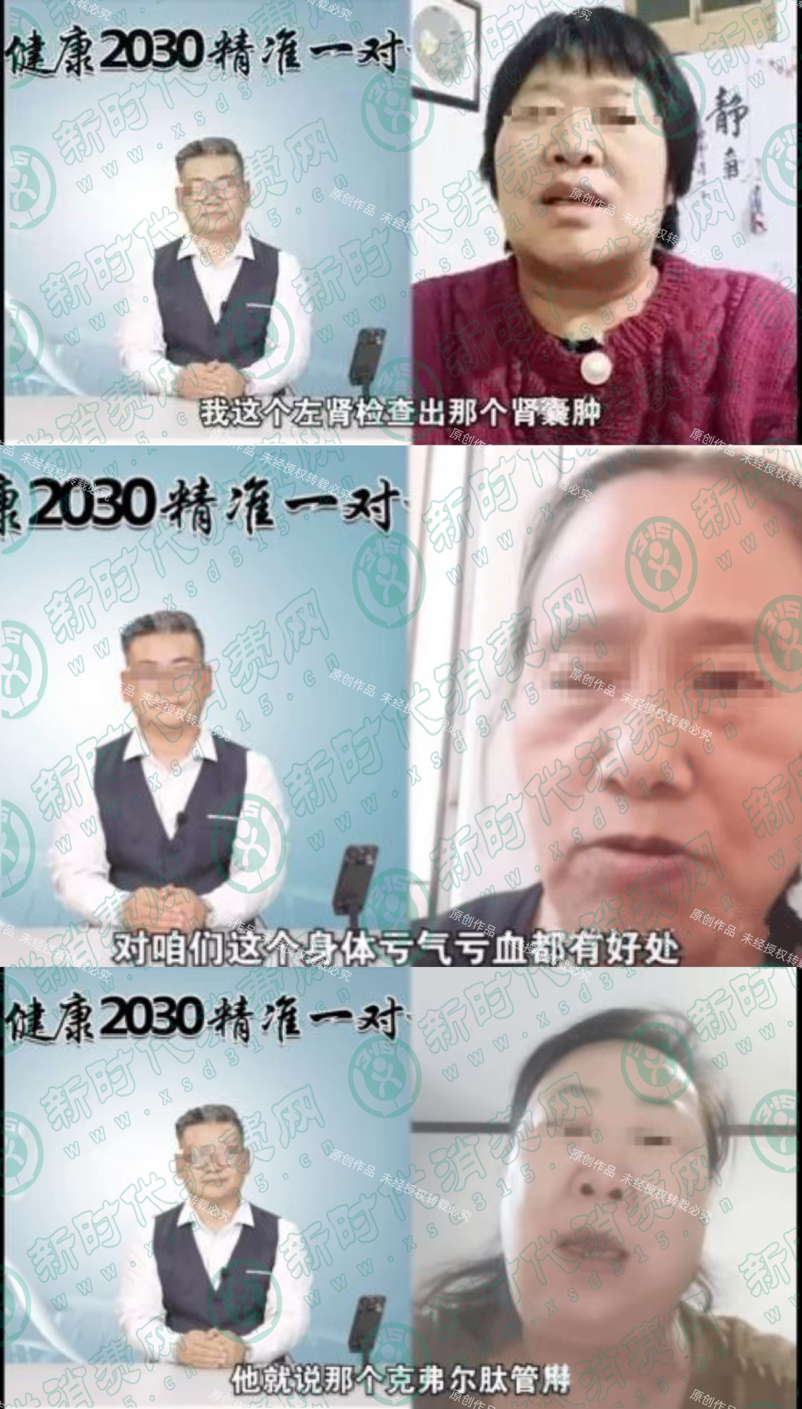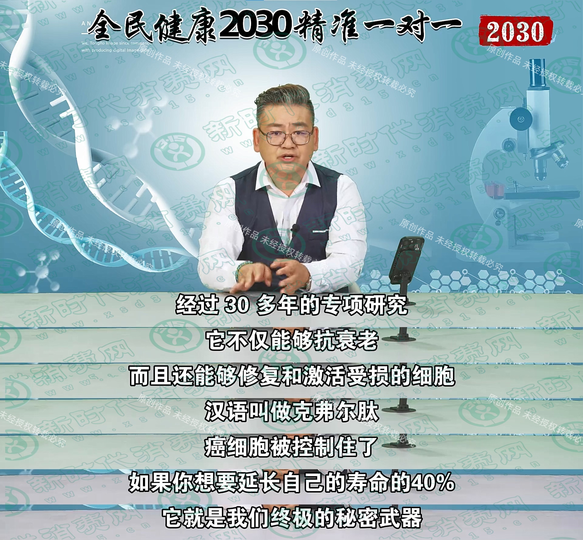 2025年以來,有多名消費者反映,在全國多個群聊中,出現(xiàn)一檔《全民健康2030精準一對一》私域直播課,內(nèi)容聲稱“KFET克弗爾肽由8位諾貝爾獎獲得者、19位著名科學家鼎力推薦,激活長壽蛋白、延緩衰老、突破基因極限、延年益壽,讓活到150歲不再是夢。”特邀嘉賓主講人為張運杰,其在視頻中顯示的頭銜有中國健康養(yǎng)老慢性病健康管理工程青年會員、中國文化科普大講堂宣傳部部長、三家愛心養(yǎng)老基地的董事長、黑龍江商會副會長等。經(jīng)查,該課程存在如下問題: