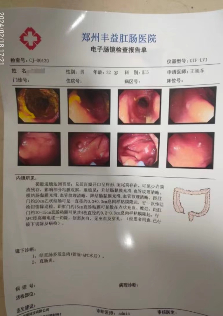 2024年2月13日,我到鄭州豐益肛腸醫(yī)院,上來就讓做腸鏡,說你這毛病只能手術(shù)切除4500。4個0.3mm以內(nèi)的直腸炎癥息肉不需要手術(shù),炎癥好了也可以自愈,結(jié)果一共花了6200元,典型的過度醫(yī)療。
