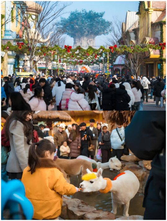 今年度假區(qū)重點打造的迎新活動,成為游客情感共鳴的焦點。通過光影倒計時、城堡亮燈、歌舞狂歡等多維聯(lián)動,在萬眾齊聲歡呼中,迎新儀式被推向高潮,創(chuàng)造了令人難忘的視聽盛宴。園區(qū)氛圍同步升級,新增20余處拍照打卡點與互動游戲,從雪花紛飛的童話小鎮(zhèn)到栩栩如生的動物燈組,一步一景,讓游客沉浸在濃厚的節(jié)日情境與探索樂趣中,極大增強了游客的參與感與獲得感。