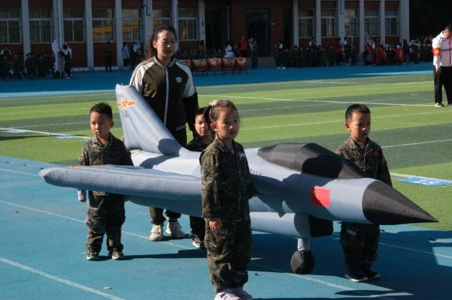 各班級入場儀式巧妙融入“軍種”“兵種”“裝備”以及祖國需要守護(hù)的重要山脈、河流等主題元素,結(jié)合兒童化的演繹,在情境創(chuàng)設(shè)和角色扮演中隆重登場、精彩亮相,引爆全場觀眾的陣陣歡呼和雷鳴掌聲,將“軍事三項(xiàng)”運(yùn)動會的氛圍推向高潮。